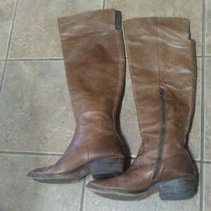 KORK EASE TALL Brown Leather WEDGE Knee High BOOTS 9 40.5.