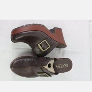 KORKS BY KORK EASE MANTHA US 9 M BROWN PEBBLE LEATHER PLATFORM HEEL CLOGS SHOES.
