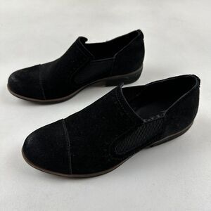 KORKS Gertrude Black Suede Leather Slip On Cap Toe Shoes Block Heel Size 6M