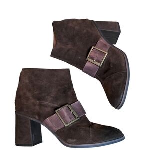 KORKS Heeled Suede Bootie with Chunky Buckle Ankle Boots | Size 9 | EUC