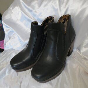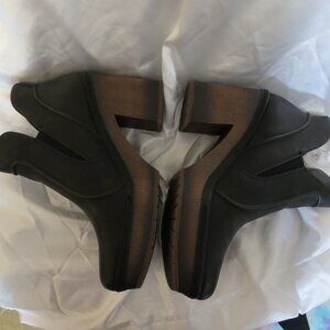 Clog shoes by Korks, preowned, gently and hardly used, slight scratch on back of the right shoe heel (see photo), size 8.5, manmade upper, balance manmade material, sole is in very good condition, like new, over all these pair of shoes are in beautiful condition. Please let me know if you have any questions.