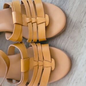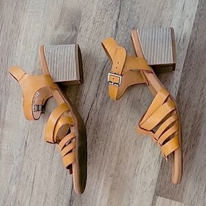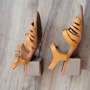 KORKS by Kork Ease Cilla Leather Stacked Heel Sandal Yellow 7