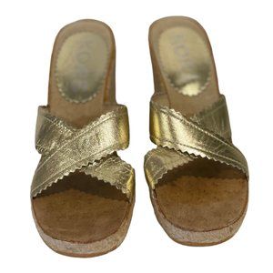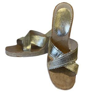 KORS Michael Kors Gold Cross Strap Espadrille Wedges, Size 6