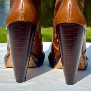 KORS Michael Kors Lisa Mid-Calf Heel Wrap Buckle Biker Boots Saddle Size 7M