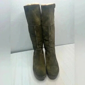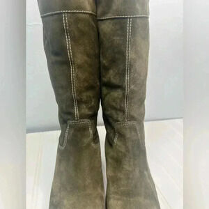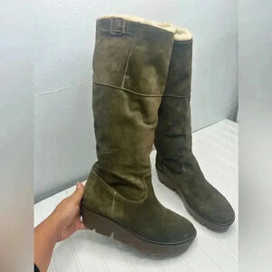 KORS Michael Kors Made in Italy Green Suede Winter Fur Wedge High Boots US 9