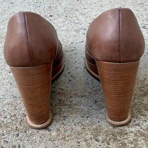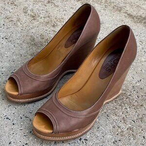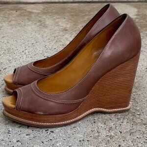 KORS Michael Kors Women's Size 9.5 Leather Open Toe Wooden Platform Wedge Heels