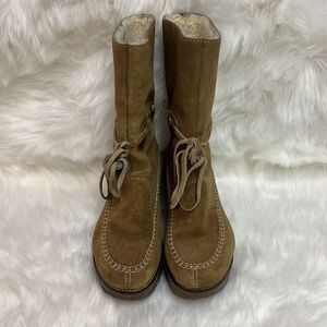 Unfortunately, I have no idea what size these boots are. I think they are a size 6 or seven, they measure from heel to toe approximately 9 1/2 inches. Sorry I don’t have more detail on the sizing.