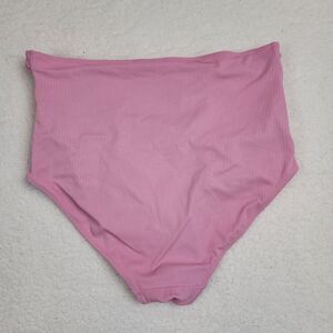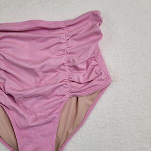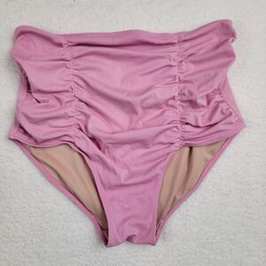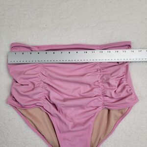 KORTNI JEANE High Waisted Ruched Swim Bottoms WOMENS Large Ribbed Pink