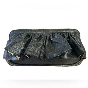 Korto Momolu Textured Faux Leather Ruffle Zebra Satin Lined Clutch Purse Bag