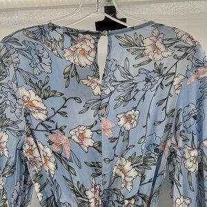 KORi Women's Floral Romper 3/4 Sleeve Blue/Multi Belted Size Small New