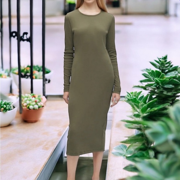 KOTN Long Sleeve Midi Dress in Olive M