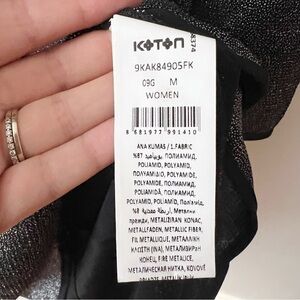 KOTON Shimmer Mini Dress Long Sleeve Party Cocktail Bodycon Black Silver M NWOT