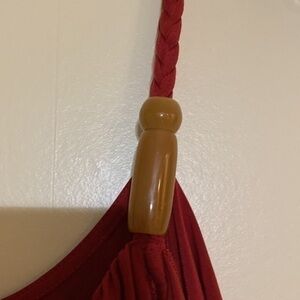 KOUTURE By Kimora Red Mini Cocktail Evening Dress Sleeveless Braided Straps with Beads Size Medium