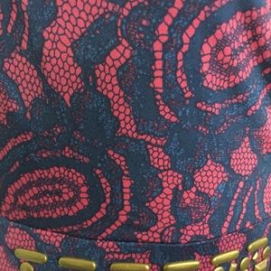 KOUTURE by KIMORA Blue/Purple Lace Print One Shoulder Shirred Dress Paisley. Size S. This is a stretch, one shoulder, shirred sides bodycon dress in a lace print pattern, with a studded waistband.