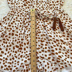 KOri America Romper Small Animal Print Drawstring Waist Pocket Boho Ruffle 15348