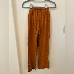 KPC 100% Cotton Boho Embroidered Girls Pants Size M Rust Brown Floral & Appliqué