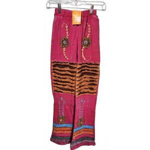 K.P.C. Handmade Bohemian Colorful Embroidered Floral Pants Size Small