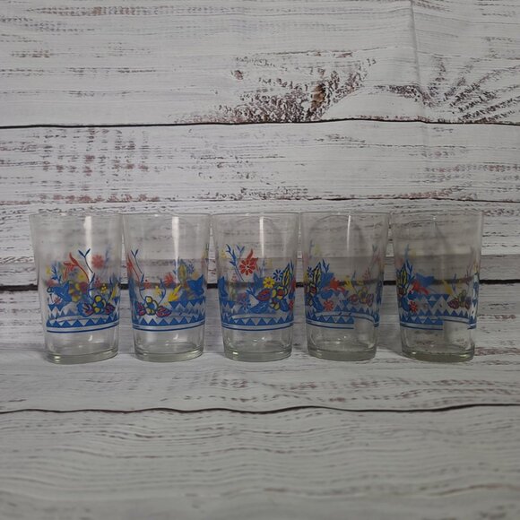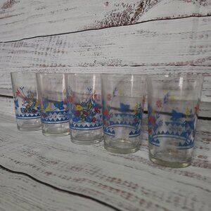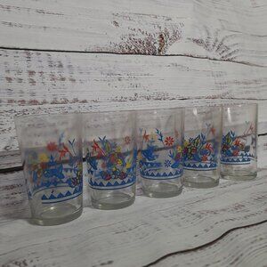 KRAFT Swanky Swig Drinking Glasses 1950s - 4 3/8" Tall - Flower - Colorful