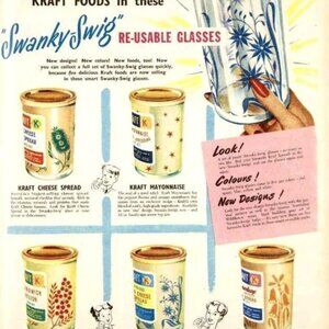 The term “Swanky Swig” was coined by Kraft Foods. Swanky Swigs were introduced by Kraft here in the 1940's, they began offering their processed cheese spreads in reusable glass containers they coined Swanky Swigs. It was a marketing strategy to encourage housewives to purchase Kraft's products during the Great Depression, when money was tight.