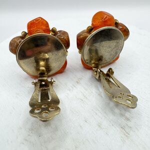 KRAMER Vintage Orange Beaded Floral Earrings Clip On Clustered Gold Tone Classic