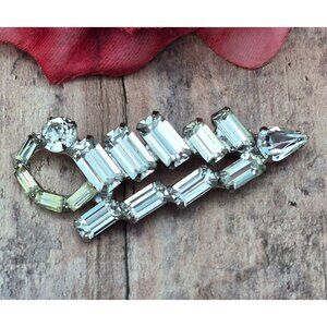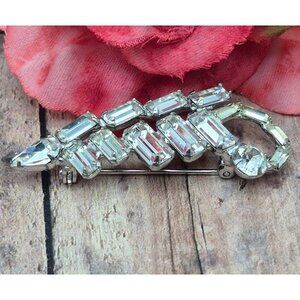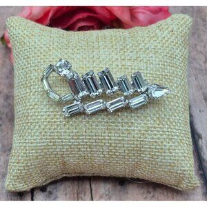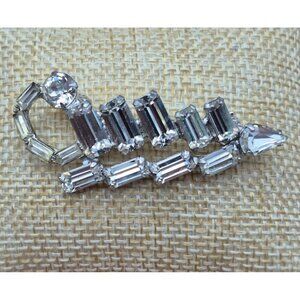 KRAMER of New York Vintage Art Deco Baguette Clear Crystal Brooch Pin 2"