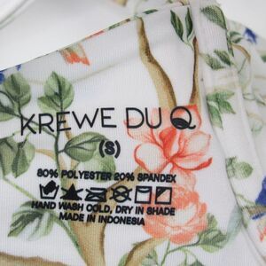 BEAUTIFUL FLORAL PRINT UNDER WIRE BRA LIKE SWIM TOP BY KREWE DU Q. Rouched shoulder straps and gold tone hook closure in the back, size s.