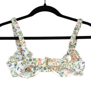 KREWE DU Q UNDER WIRED RUFFLED SWIM BRA TOP IN FLORAL WHITE SZ S