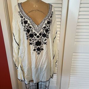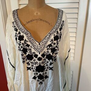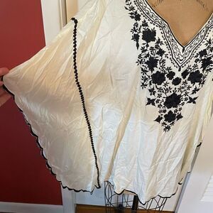 KRISTA LEE | cream and black peasant style bohemian cape style top XL NWT $74