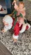 Featuring Santa in classic red and white, with a joyful child in pink, this piece is perfect for holiday decor.