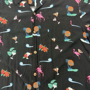KS Island Mens 2XL Tall Black Short Sleeve Hawaiian Shirt Flamingo Martini