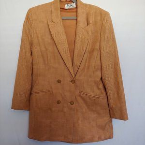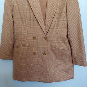 KS. Klaus Steilmann Vintage Light Peach and Brown Plaid Womens Blazer38