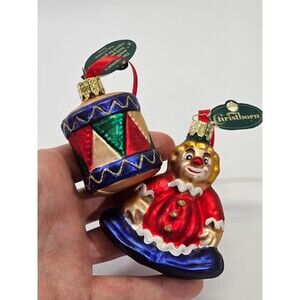 Christborn Christmas ornamentClown figure measures approx 3.75 tall, drum measures approx 2.5" tallConnected to a 10" ribbonBrand new, with tag