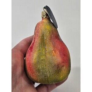 KSD VINTAGE Christborn Marshall Field's Blown Glass Sparkly Pear Ornament NEW