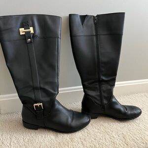 KS-DELIEE extended wide flag flat black boots