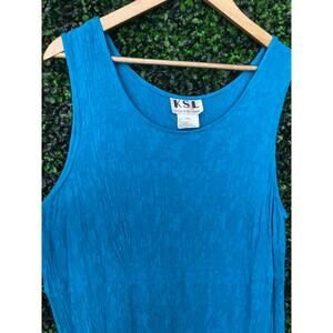 The KSL division of Karin Stevens summer dress is a stylish and versatile option for women size 20W. This sleeveless, round-neck dress features a solid blue color with a long A-line silhouette, making it suitable for various occasions such as travel, party, casual outing, or business meet-ups. Made from rayon fabric, this pullover dress is machine washable for easy care and is perfect for the summer season. The timeless classic theme and colorful design make it a fashionable choice for any woman looking for a comfortable and chic outfit option.