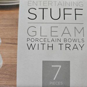 KSP Christmas Gleam Porcelain Bowls with Tray - Set/7 (White/Silver)