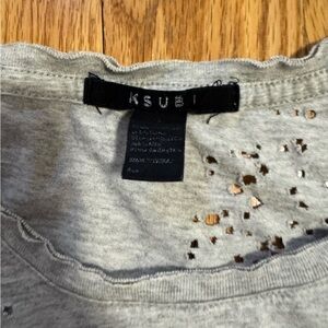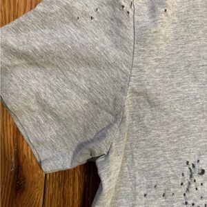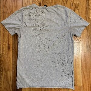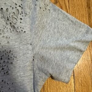 Size S. Fits true to size. Worn. Slight discoloration at the armpits, negligible when on (pictured).