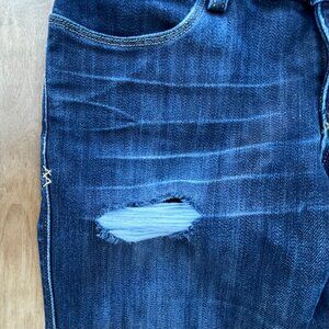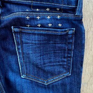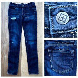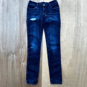 Excellent Condition KSUBI SUPER SKINNY ZIP HEM LOW RISE WOMEN’S JEANS sz 27 Dark Wash Destructed Denim