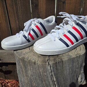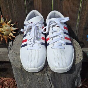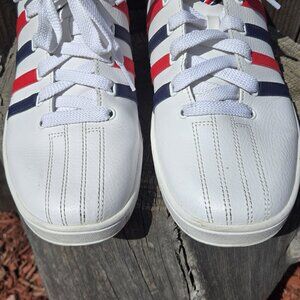 Here’s your chance to pick up a pristine classic on the cheap… a pair of very gently worn K-Swiss Men's Classic 2000 (Low). As the array of pictures detail, there are literally no blems or signs of wear. I take care of my shoes. And the red and blue stripes are a great way to show your colors if you’re an American. Or Icelander. Or French, Nederlander, Chilean or Croatian.