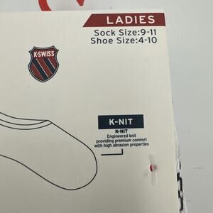 KSwiss Foot Liners Socks Ladies Womens Size 9-11 Silicone Tab No Show 6 Pairs