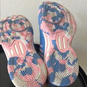 Vibrant blue sneakers with pink details. Comfortable and stylish for everyday wear.
