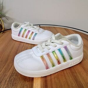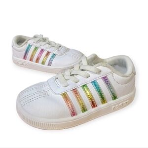 K-Swiss Kid's Classic Pro Sneaker White / Rainbow Stripes Size 6