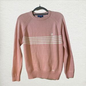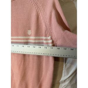 K-Swiss L Pink Y2K Striped Crew Neck Logo Pullover Sweater Tennis Preppy Sporty