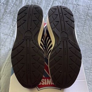 K-Swiss sneakers with a black and gray design and pink accents. Perfect for everyday comfort and style. Worn once.