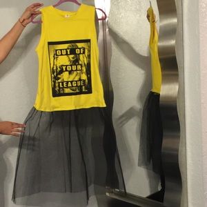 NEW! Yellow cotton fashion muscle tee with unique black tulle attached. Perfect wear with jeans or leggings