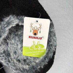 KUAILU NEW Clog Slip On Slipper Womens 8 Black Gray Fur lined Rubber Sole
