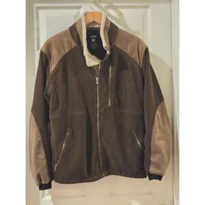 KUHL ALPENWURX Fleece Jacket Brown Full Zip Faux Leather Sherpa Collar Medium