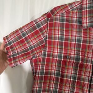 KUHL Eluxur Shirt Men's Medium Red Plaid Button Up Short Sleeve Lightweight
