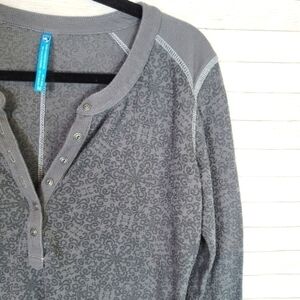KUHL FLORAL PAISLEY THERMAL KNIT BUTTON FRONT HENLEY, SZ MEDIUM