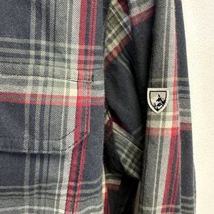 Kuhl "Born of the Mountain" casual buttondown flannel shirt. 2 front pockets, no extra (replacement) button